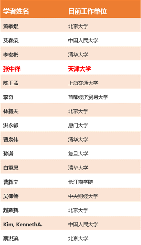 2019年“经济、经济计量学和金融”领域中国高被引学者榜单: