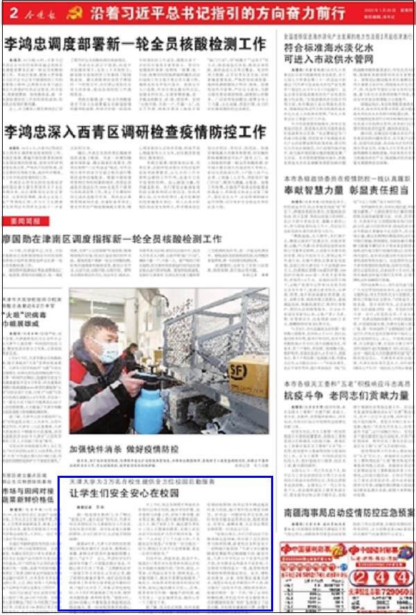 本报讯(记者 李杨) 新一轮疫情突袭津门,为了响应“就地过年,减少流动”的号召,天津大学北洋园校区与卫津路校区3万余名在校生坚守校园。面对如此庞大体量的群体,学生们的学习、生活能否得到保障?