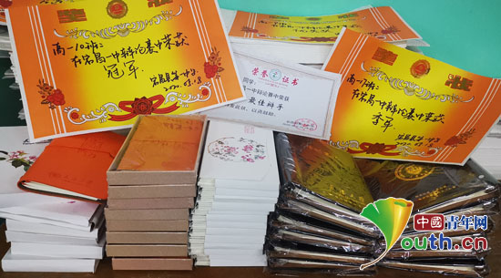 图为辩论赛获奖选手的奖状和奖品。天津大学研支团 供图
