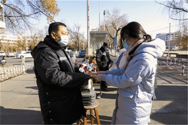 寒潮出现后,天津大学教师3000余人次参与了校门志愿值守。天津大学的学生们贴心地送来了热水与暖贴。 李杨 赵晖文 张立 陈晓金摄