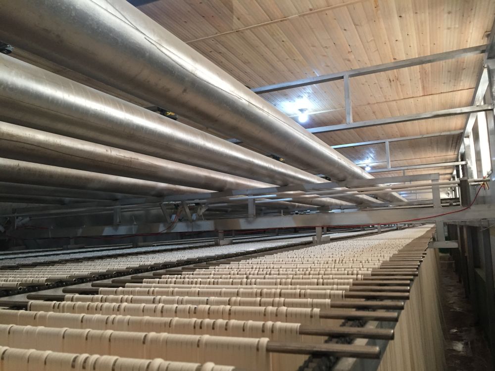 挂面厂生产车间内,雪白的面团经过多道工序变成根根“银丝”,似帘幕一般挂在转轴上。图片由受访者提供