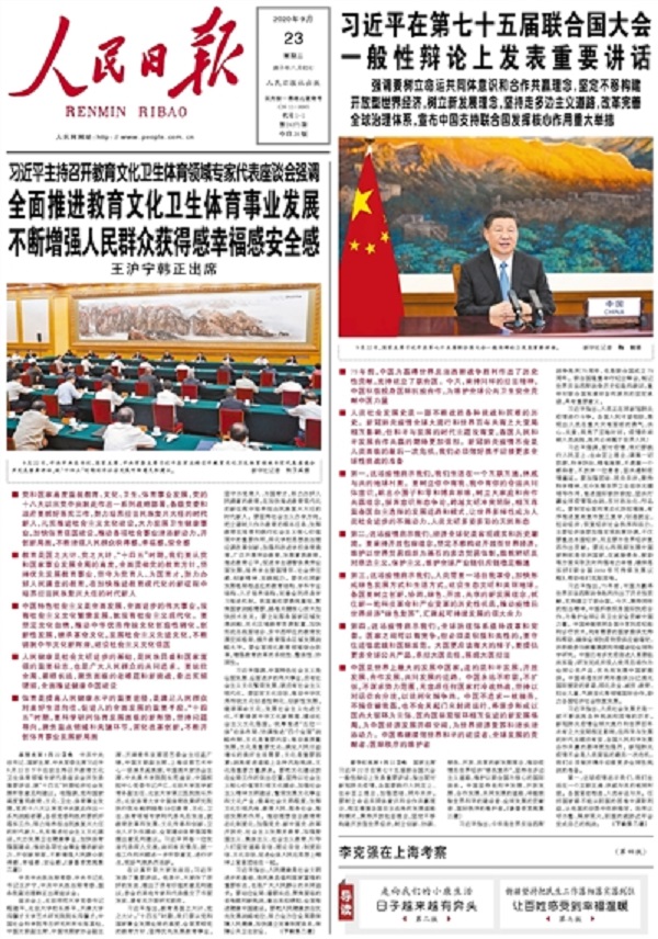 《人民日报》2020年9月23日头版