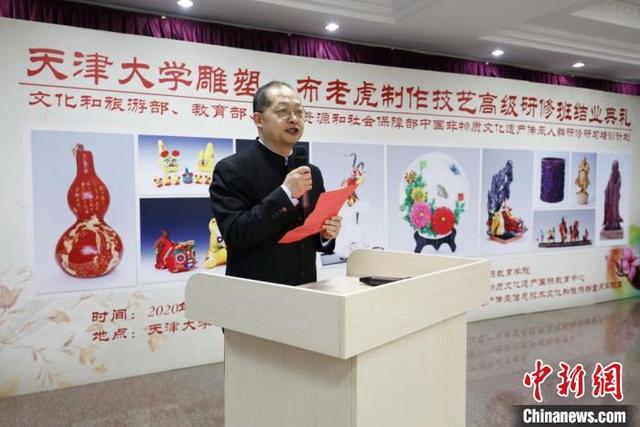 图为天津大学布老虎、雕刻制作技艺高级研修班结业仪式。天津大学供图