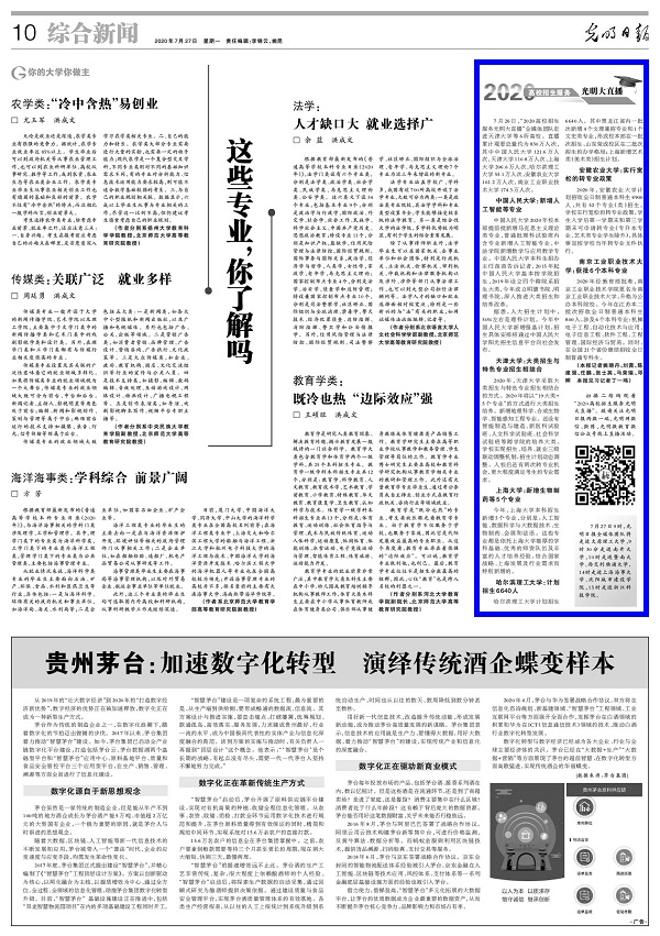 中国人民大学2020年校本部提前批新增马克思主义理论类专业,普通批理科试验班内含专业新增人工智能专业,中法学院新增数学与应用数学专业。中国人民大学本科生招办主任苗苗告诉记者,2015年起中国人民大学基本按学院招生,2019年设立四个跨院系招生大类,今年成立明德书院、明理书院,深入推进大类招生和培养改革。