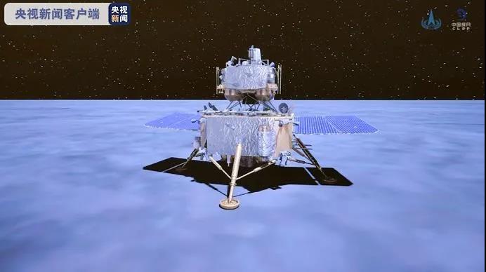 12月1日23时11分,嫦娥五号探测器成功着陆在月球,并传回着陆影像图。