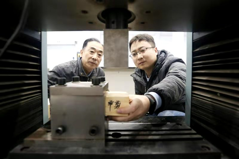 空间力学团队徐家福高级工程师(左一)与屈川工程师(右一)测试着陆器试验面的各种物理力学性质