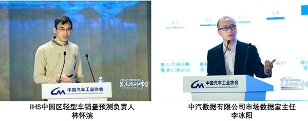 IHS中国区轻型车销量预测负责人林怀滨做了《2021年汽车市场发展趋势》的演讲、中汽数据有限公司市场数据室主任李冰阳做了《2021年汽车市场发展趋势》的演讲。