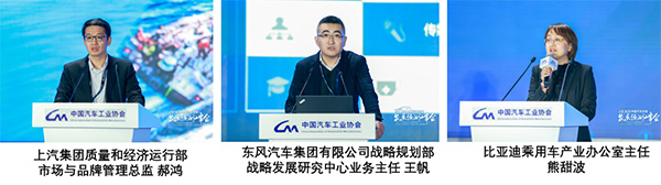 作为典型整车企业代表,上汽集团质量和经济运行部市场与品牌管理总监郝鸿、东风汽车集团有限公司战略规划部战略发展研究中心业务主任王帆和比亚迪乘用车产业办公室主任熊甜波分别就乘用车市场发展、商用车市场发展和新能源汽车等细分市场进行了专项分析及预测。他们的演讲题目分别是《2021年乘用车市场发展趋势》、《2021年商用车市场发展趋势》、《2021年新能源汽车市场发展趋势》。