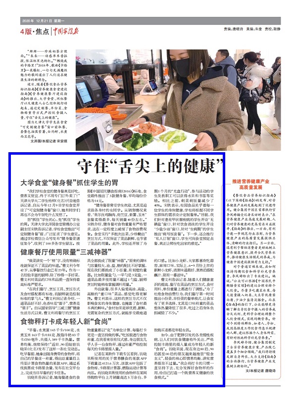 近日,随着《餐饮食品营养标识指南》《营养健康食堂建设指南》《营养健康餐厅建设指南》的推出,大学食堂、网红餐厅以及健康人士已经积极行动起来,通过定制餐、半份菜、食物称重等方式严控饮食摄入量,守住“舌尖上的健康”。