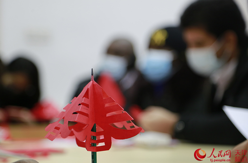 留学生们展示制作完成的窗花。人民网 崔新耀摄