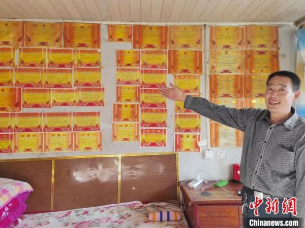 图为村民徐世斌家中的“奖状墙”。祁增蓓 摄