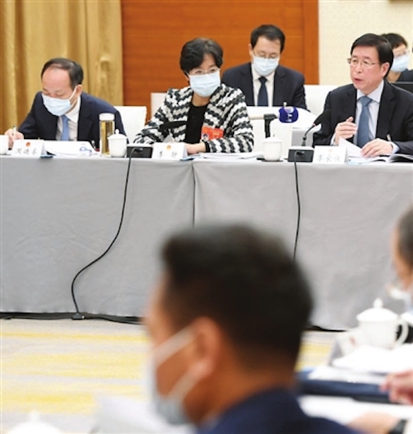 天津代表团代表审议政府工作报告。 本报记者 杜建雄 摄