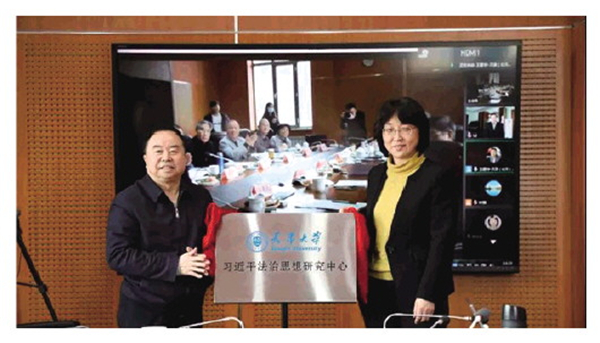 本报讯 (记者 张弛 通讯员 郭金石)3月14日,天津大学习近平法治思想研究中心在天津大学法学院成立。来自各行业四十余位专家学者齐聚一堂,共同见证中心的成立。天津大学人文社科处处长、文科建设办公室主任张俊艳,法学院院长孙佑海,法学院党委书记杨欢,法学院副院长杨健,法学院教授张恒山、熊文钊、王建学、魏健馨,副教授董妍等出席。