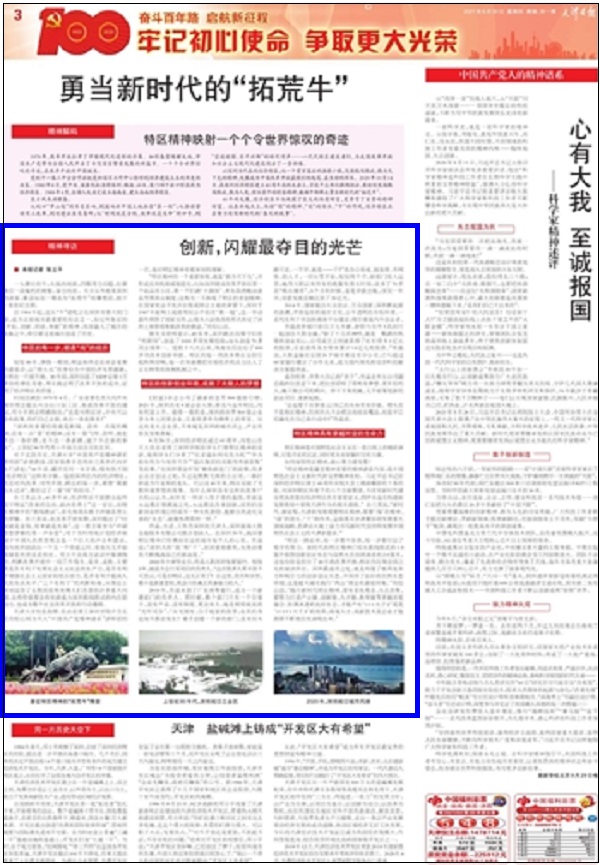 特区精神是中国特色社会主义在一张白纸上的精彩演绎,它是历史的沉淀,同时更具有穿越时空的力量。