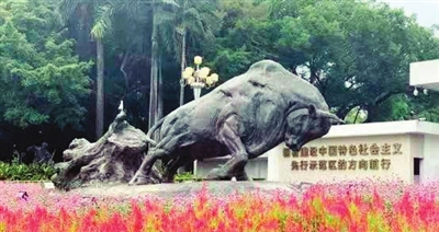 自1984年起,这头“牛”就屹立在深圳市委大院门前,成为这座城市最重要的标志之一,如它所象征的“开拓、创新、团结、奉献”的精神,深深融入了城市的血脉之中,牵引着这座城市创造了历史。