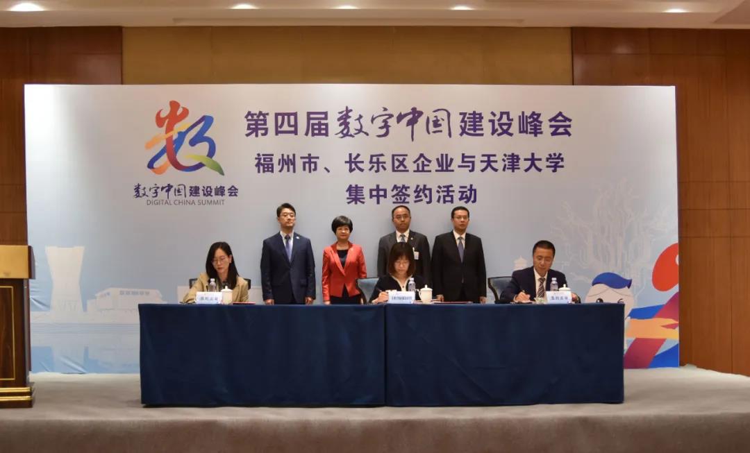 本届数字峰会,天津大学继续着力推动产学研工作。25日下午,福州市、长乐区企业与天津大学集中签约活动在聚春园会展酒店举行。