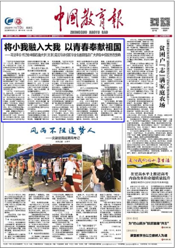 中国教育报:http://paper.jyb.cn/zgjyb/html/2020-07/10/content_582263.htm?div=-1