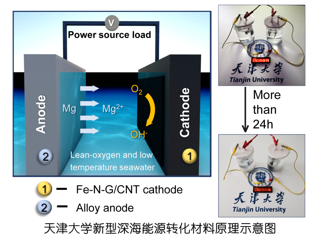 津云新闻讯:日前,天津大学杨全红、凌国维、张辰联合团队成功研发全新能源转化材料。这种新材料能够“捕捉”深海中稀薄的氧分子并转化成为电能,实现长周期运行,成为一种节能、稳定的“海水电池”。该研究成果已被最新一期国际能源领域权威期刊《先进能源材料》选为封面文章。