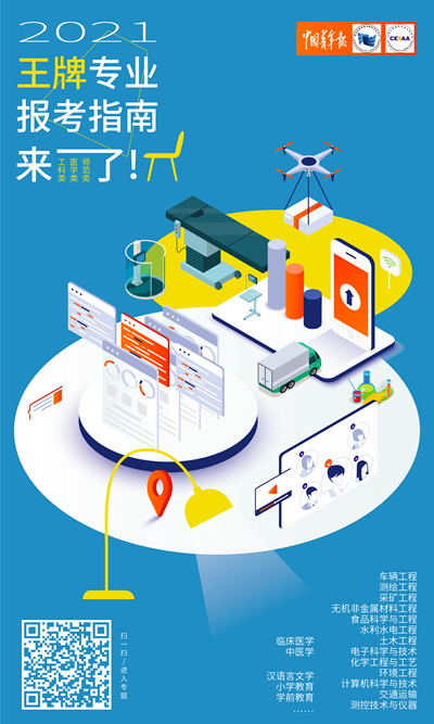 2021“王牌”专业报考指南来了!更多的“王牌”专业文字和视频介绍,请打开中国青年报客户端https://s.cyol.com/special/3DjpLx10.html,或扫一扫该专题二维码。请收好!