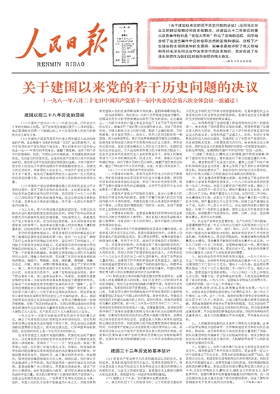 1981年7月1日,《人民日报》刊发《关于建国以来党的若干历史问题的决议》。