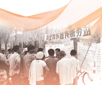 1981年9月,河北临西县实行包产到户后,农技推广站在集上销售种子、农药,许多农民前来咨询农业技术问题。