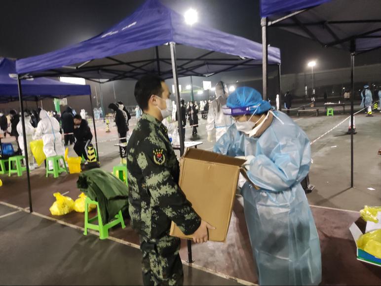 在天大校园,神秘的“葱油饼”不止一个:连日来,一大批医务工作者正奋战在天津大学“战疫”第一线,他们不舍昼夜,无暇休息,甚至没有时间好好吃上一口热乎饭。看到这种情况,学校师生志愿者迅速组织起来,连夜为白衣天使们准备了热饮,把暖手用的水瓶一瓶瓶揣进他们手中。学校还特意为医务工作者准备了有软座靠背的房间作为休息区,同学们也送来了水果和点心......“虽然不知道你们的名字,也看不清你们的样子,但我衷心谢谢你们,谢谢你们用辛勤汗水点亮了北洋园的夜晚!”1月11日凌晨,在天津大学北洋园校区持续一整夜的第二轮核酸筛查结束后,同学们的朋友圈正迅速“刷屏”,更有一句话“整齐划一”——向辛勤劳动一整夜的医务工作者和师生志愿者致敬!