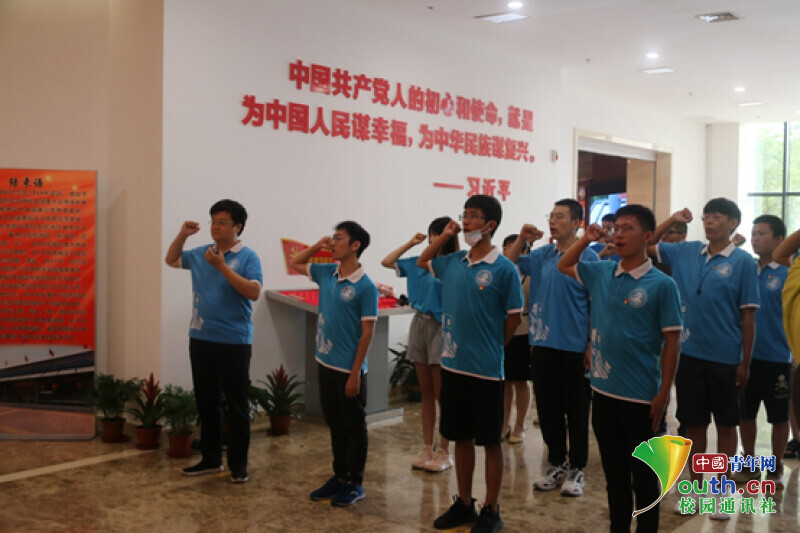 图为实践队员在海阳市地雷战党性教育基地重温入党誓词。中国青年网通讯员 刘宇 供图