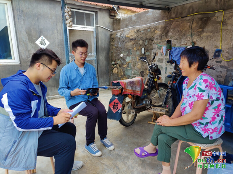 图为部分实践队员在村民家中进行问卷调查。中国青年网通讯员 刘宇 供图
