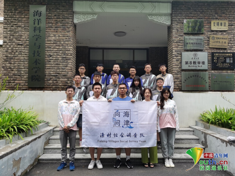 图为实践队员在天津大学海洋科学与技术学院楼前合影。中国青年网通讯员 刘宇 供图