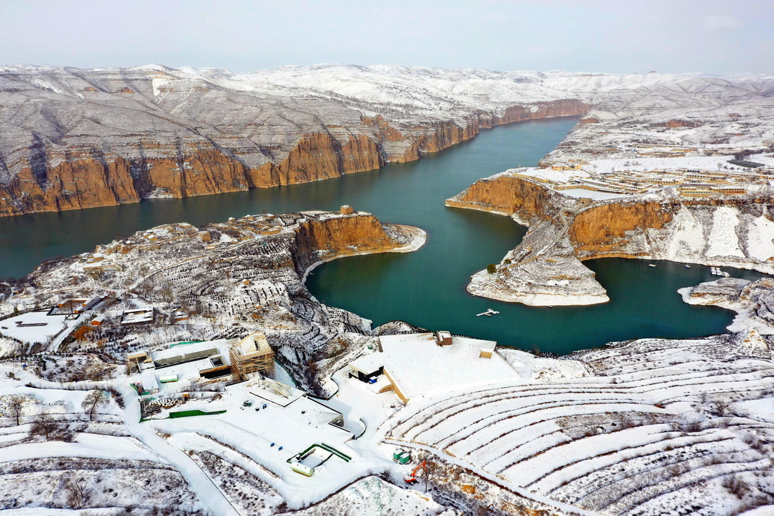 11月7日拍摄的山西老牛湾,长城和黄河在此“握手”(无人机照片)。新华社发(吕成贵 摄)