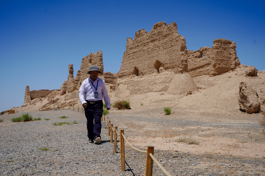 5月31日,张建军在河仓城(大方盘城)遗址周围巡护。新华社记者 郎兵兵 摄