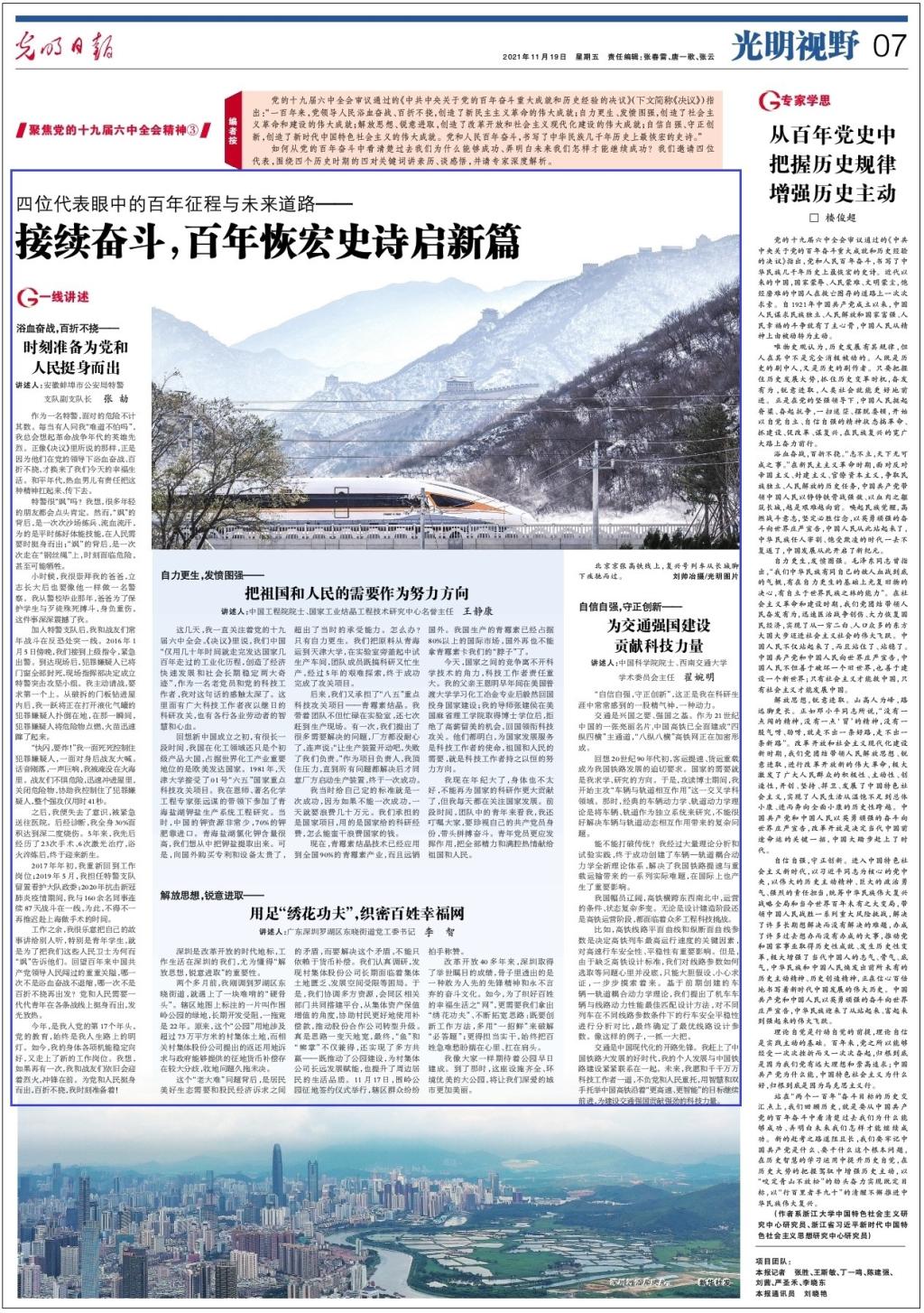 这几天,我一直关注着党的十九届六中全会。《决议》里说,我们中国“仅用几十年时间就走完发达国家几百年走过的工业化历程,创造了经济快速发展和社会长期稳定两大奇迹”,作为一名老党员和党的科技工作者,我对这句话的感触太深了。这里面有广大科技工作者夜以继日的科研攻关,也有各行各业劳动者的智慧和心血。