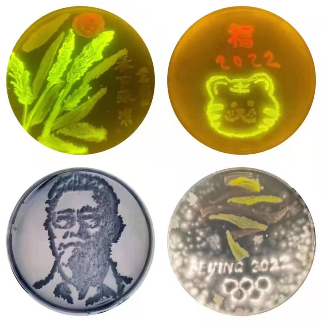 冬奥会徽、嘉兴红船、天大校徽、诺贝尔奖得主画像、禾下乘凉梦、钟南山院士头像、各种各样的卡通形象和风景……秦雨珂和同学们这一幅幅画风精美、颇有创意又积极向上的“微生物绘画”,让授课教师王智文副教授收获了惊喜。