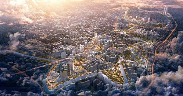 这座“城”将由“一城九岛”十一个特色组团构成。以水绿为脉划分组团,形成数字岛、设计岛、营造岛、艺术岛、体育岛、文化岛、生态岛、金融眼和产权交易岛这9个主题岛,结合保留更新的中环商业和河畔社区共同打造11个特色功能区。