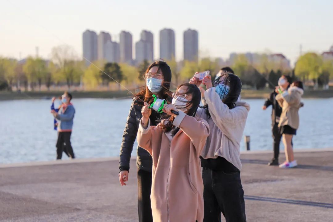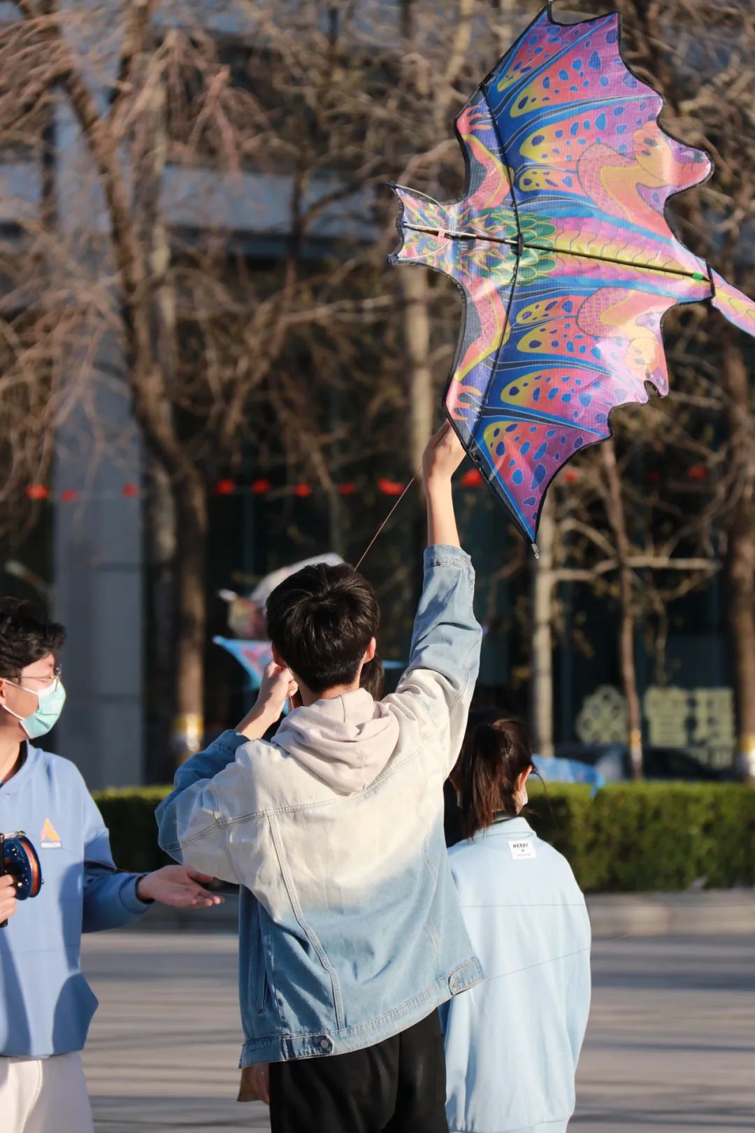 为了让学生们在享受风筝乐趣的同时做到疫情防控和安全保障两不误,学校下足了功夫:一方面划出专门的“风筝场地”,由校团委组织辅导员和学生志愿者现场维持秩序,避免人员聚集,提供口罩、酒精洗手液等防疫物品;另一方面提醒学生在固定范围开展活动,与周围建筑和他人保持安全距离,让大家玩得开心、安心、放心。