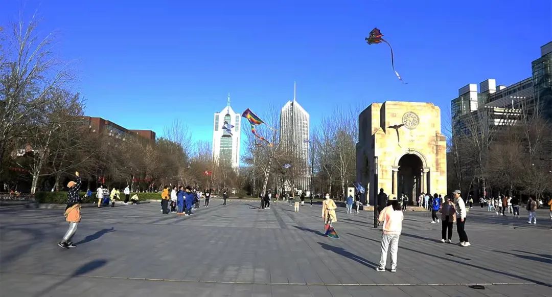 天津大学自动化学院2019级本科生小李说:“好久没有这样自由自在地放风筝了,好像回到了童年,对每天封闭在校园里上网课的我们来说,情绪也得到了放松和舒缓,感觉学校超有爱!”