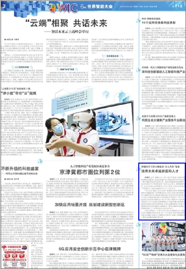 本报讯(记者 姜凝)24日,第六届世界智能大会数字健康高峰论坛暨第三届全国智能医学工程教育联合体年会以线上线下相结合的形式在津召开。来自全国80余所高等院校、30余所高水平三甲医院及若干领军企业,院士、高等教育专家、业内专家及行业代表等共计百余人参会,共同讨论并发布了《智能医学工程专业建设共识(“天大共识”)》。