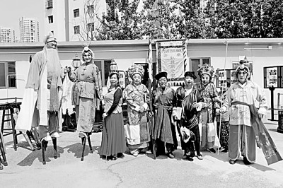 寥寥数人中,有的重病在身,气力不济时,躺在地上缓一缓,也要完成这非凡的谢幕;有的坐在轮椅上让家人推来,也不能缺席今日此时。暑气蒸腾中,汗水浸融了他们脸上的油彩。