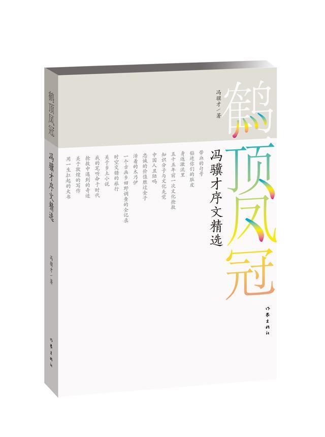 《鹤顶凤冠:冯骥才序文精选》分为两大部分,一是为自己的书所写的自序,一是应人所邀写的代序。他用“白鹤周身雪,顶上一点红”“彩凤百色衣,其冠貌如花。”来比喻自序和代序。冯骥才说,序文是一种特殊的文体,不是可有可无,它有特殊的功能。有些话必须写在序中,而且必须简洁明了。好的序文还要把读者带入书中。数十年里,他写了不少序文。“由于我不大喜欢麻烦别人作序,我的书基本都是自序。书的中外版本多,自序的篇数已经过百。此外,我的友人多,朋友常会托我写序,然而只要应了人家,从不应酬,草率为之。”冯骥才认为,文字很贵重,只要下笔,一定要拿出真切的感受,或深入思考,表达己见,否则就不写。