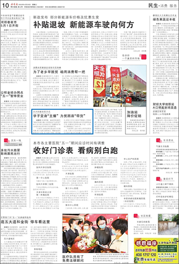 本报讯(记者李杨 通讯员焦德芳)“拿起手机做主播,为贫困县农产品带货!”如今,在天津大学校园内外,“直播带货”助力扶贫正成为青年学子们的新时尚。