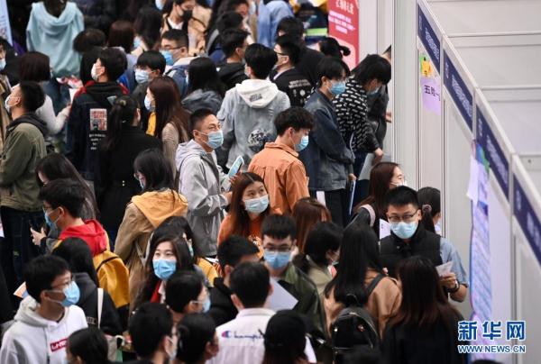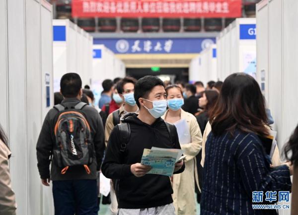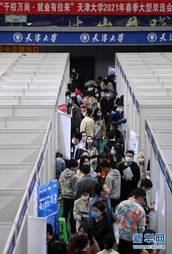 这是4月2日拍摄的天津大学2021年春季大型双选会现场一景。