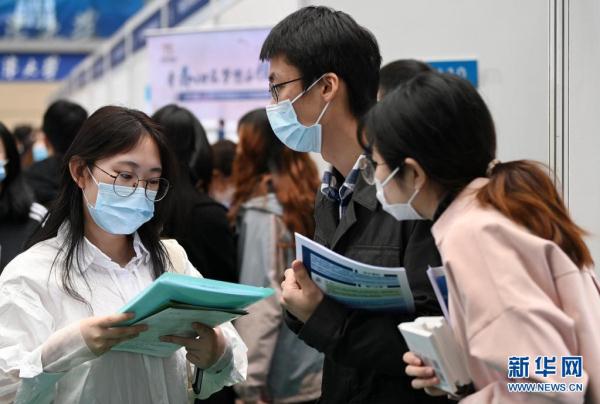 4月2日,学生在天津大学2021年春季大型双选会现场寻找心仪岗位。