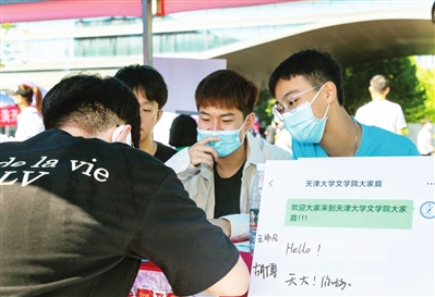 本站讯(通讯员 姜凝)8月25日、26日,天津大学近5000名2021级本科生新生报到,天津财经大学4800余名2021级本科生新生报到,校园中,“欢迎2021级新同学”的标语格外醒目。此前,天津大学、天津工业大学、天津科技大学等多所学校已有其他年级学生陆续返校。根据安排,遵循错峰、错时、错区域原则,8月26日开始,天津医科大学、天津理工大学、天津中医药大学、天津音乐学院、天津职业技术师范大学等高校2021级本科生新生也将分期分批有序开学报到,校园中又洋溢起青春活力。记者走访发现,多所高校为迎接学生返校、报到,采取多种措施,简化学生注册流程,合理布局分区,避免人群聚集。学校全方位保障迎新期间疫情防控,也用丰富多彩的迎新服务让新同学感受到了新环境的热情和温暖。