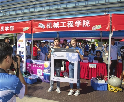 此外,财大各学院根据专业特色,设置了许多有纪念意义的环节:统计学院推出独具特色的“迎新盲盒”,里面有学院精心设计定制的院徽、帆布袋、卡套、书签、可乐等一系列文创产品,希望统计学子能将这份趣味与惊喜带到新的生活、学习中;会计学院组织了新生“绘梦 聚梦 忆梦 追梦”活动;商学院布置了新生留影展板……都力图帮助学生尽快熟悉校园、投入大学生活。