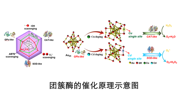 天津大学团队在国际上首次提出“团簇酶”概念,他们通过单原子调控的方法成功设计出一类具有原子精确结构的人工酶——“团簇酶”。实验证明,“团簇酶”具有高催化活性和选择性,其抗氧化活性是天然水溶性维生素E的160倍,是花青素分子的9倍。生物学结果显示,使用“团簇酶”制剂能有效减轻脑损伤小鼠的神经炎症,显著降低病鼠体内的炎症因子。特别值得一提的是,“团簇酶”尺寸超小,能通过肾脏自然滤除,这也意味着使用“团簇酶”药物可以避免对肝肾等器官的副作用损伤。