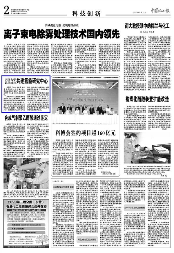 本报讯 9月14日,天津大学—昌邑城投潍坊氢能产业技术联合研究中心签约仪式在天津举行。