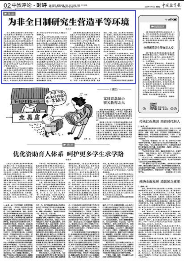 二是要抓好相关政策配套支持。目前,“非全”与全日制研究生在学费、奖励资助、户籍、住宿、就业等多方面的确存在一些差异,有些是来自于部委单位的政策配套支持方面,有些是高校自身的资源约束受限所致,还有些则是因学习形式、学位类型自身特点所造成的,针对这些差异须精准研判、分类施策、因地制宜。譬如,推动相关部委完善非全日制研究生奖助待遇,鼓励研究生培养单位探索设置非全日制研究生奖助学金,提升非全日制研究生学习积极性。