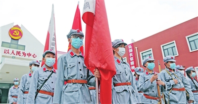 “红军不怕远征难,万水千山只等闲……”在红色旅游村──西青区第六埠村,在天津大学马克思主义学院老师的带领下,河西区平山道小学的学生们深情朗诵起这首毛主席诗词《七律·长征》。整齐清脆的童声,传递的是对伟大长征精神最崇高的敬意,是对不怕困难、百折不挠、勇往直前的革命先辈最由衷的钦佩。
