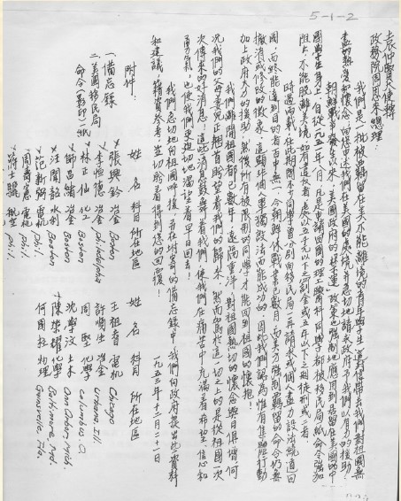 1953年12月21日,师昌绪、张兴钤、李恒德等15人致周恩来的联名信。