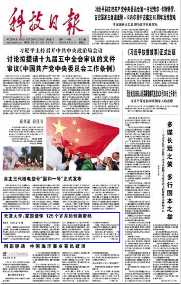 “今天,我们把‘矢志创新’作为天大品格的核心表达之一。”言及创新,天津大学党委书记李家俊如数家珍,“科学无国界,但科学家有祖国,爱国是科学家精神的第一要义。天大是中国第一所将‘家国情怀’明确写入大学章程的高等学府。国之所需,吾志所向,我们鼓励师生把论文写在祖国大地上!”